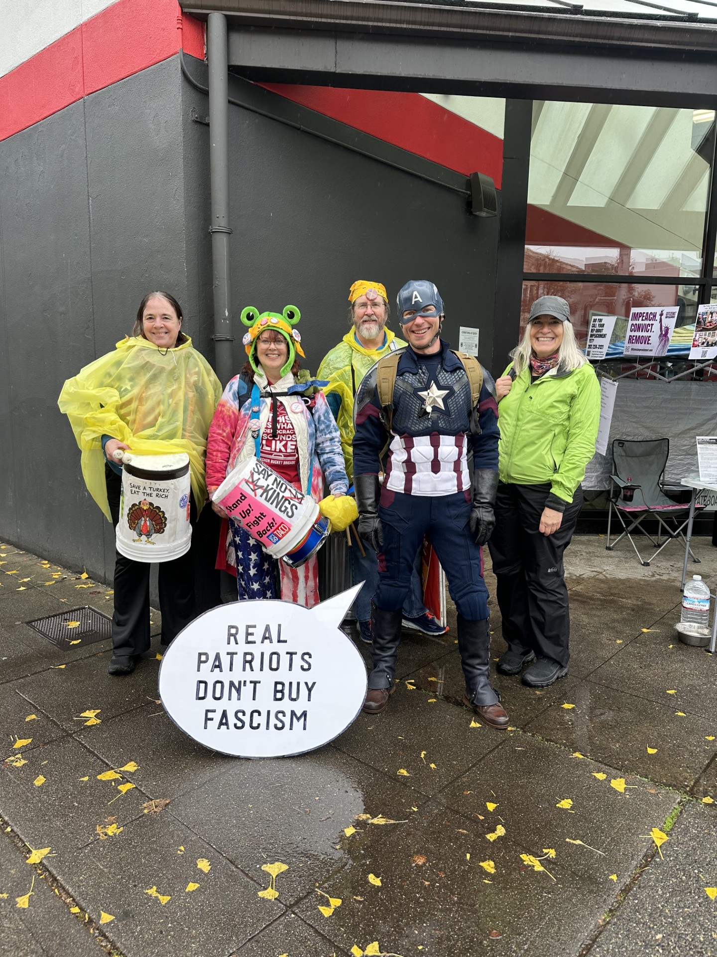 Even if you have more enthusiasm than talent, join us for “How to become a 5-gallon bucket drummer” and practice. We have already made a splash on the Washington scene: we got a shout-out on a WA SEIU Organizing Zoom – said we were really helping make creative noise at events and that everyone should request that we come to their event!