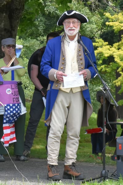 Indivisible Vashon joined about a hundred people who gathered to mark the anniversary of the Vashonites who were deported from Vashon to concentration camps in CA during WWII.