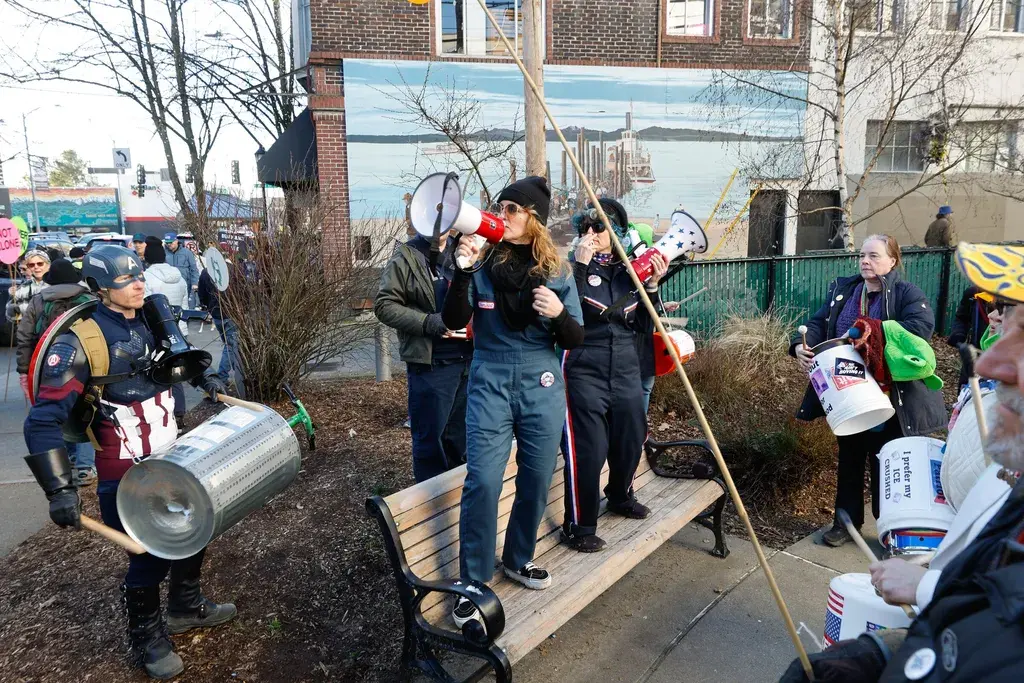 Vashonites went to Olympia, Seattle, and the 4-way stop in town to protest the overreach of the administration on April 5th as part of the nationwide HANDS OFF! protests. Over 5 million people nationwide took part!
