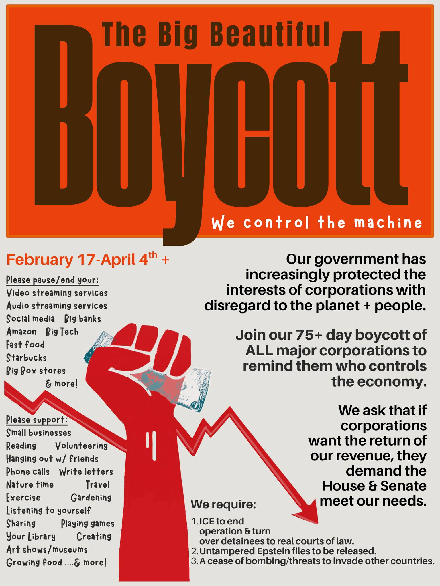 The boycotts are WORKING! Tesla’s sales are down over 70% and Target’s profits and foot traffic have fallen dramitically since they caved to the Admin’s demands to cancel DEI. PLUS, Spotify and Avelo Airlines have declined to renew their contracts with DHS due to the public pressure and pushback. Keep it up!